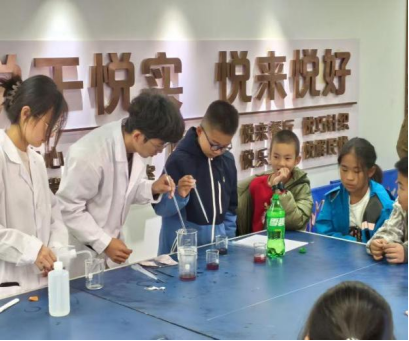 志愿服务部赴悦海社区开展化学科普志愿活动,以趣味化学实验点亮儿童科学探索热情。