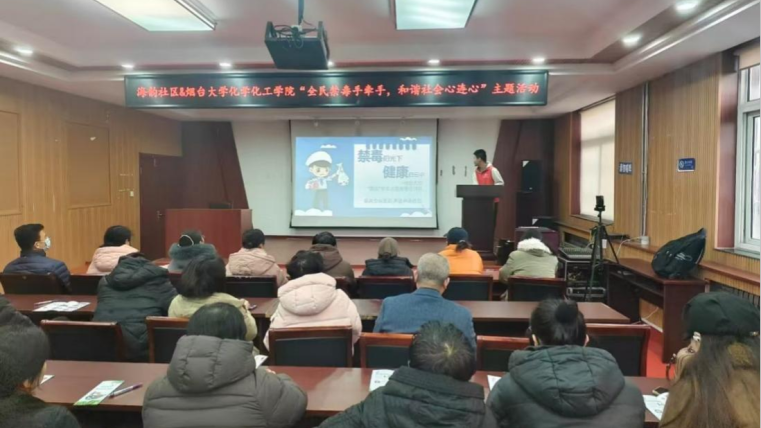 为进一步筑牢社区禁毒防线,提升居民识毒、防毒、拒毒意识,2025年12月11日,烟台大学“猎冰”禁毒志愿服务宣讲队与志愿服务部在福山区海韵花园联合开展了以“全民禁毒手牵手,和谐社会心连心”为主题的禁毒活动。