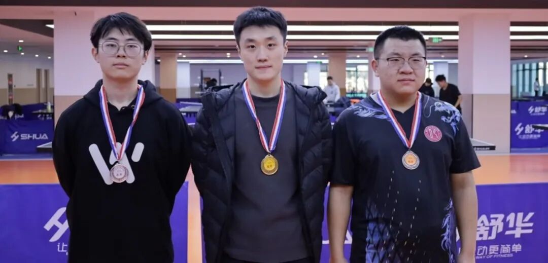 经过激烈的角逐,男子单打项目的冠军由黄雨松同学获得!他以出色的技术和稳定的发挥,成功问鼎冠军宝座!亚军汪宇航的稳健防守、季军刘虎的快攻打法,都在赛场上留下了高光时刻,他们联袂奉献的多场对战,也淋漓尽致地展现了澳彩学子的拼搏风采。